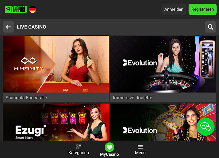Fansport Casino auf dem Android und Tablet